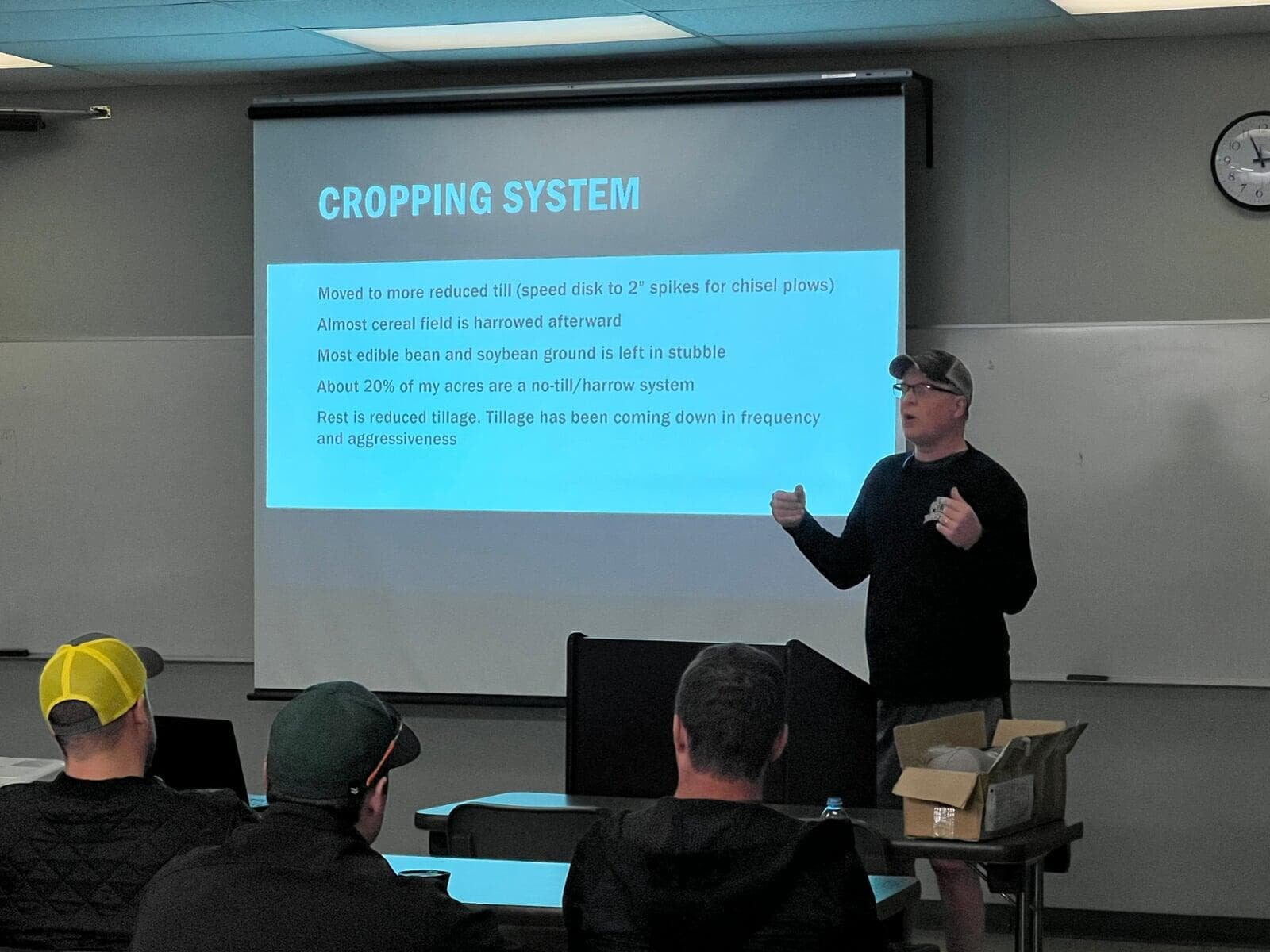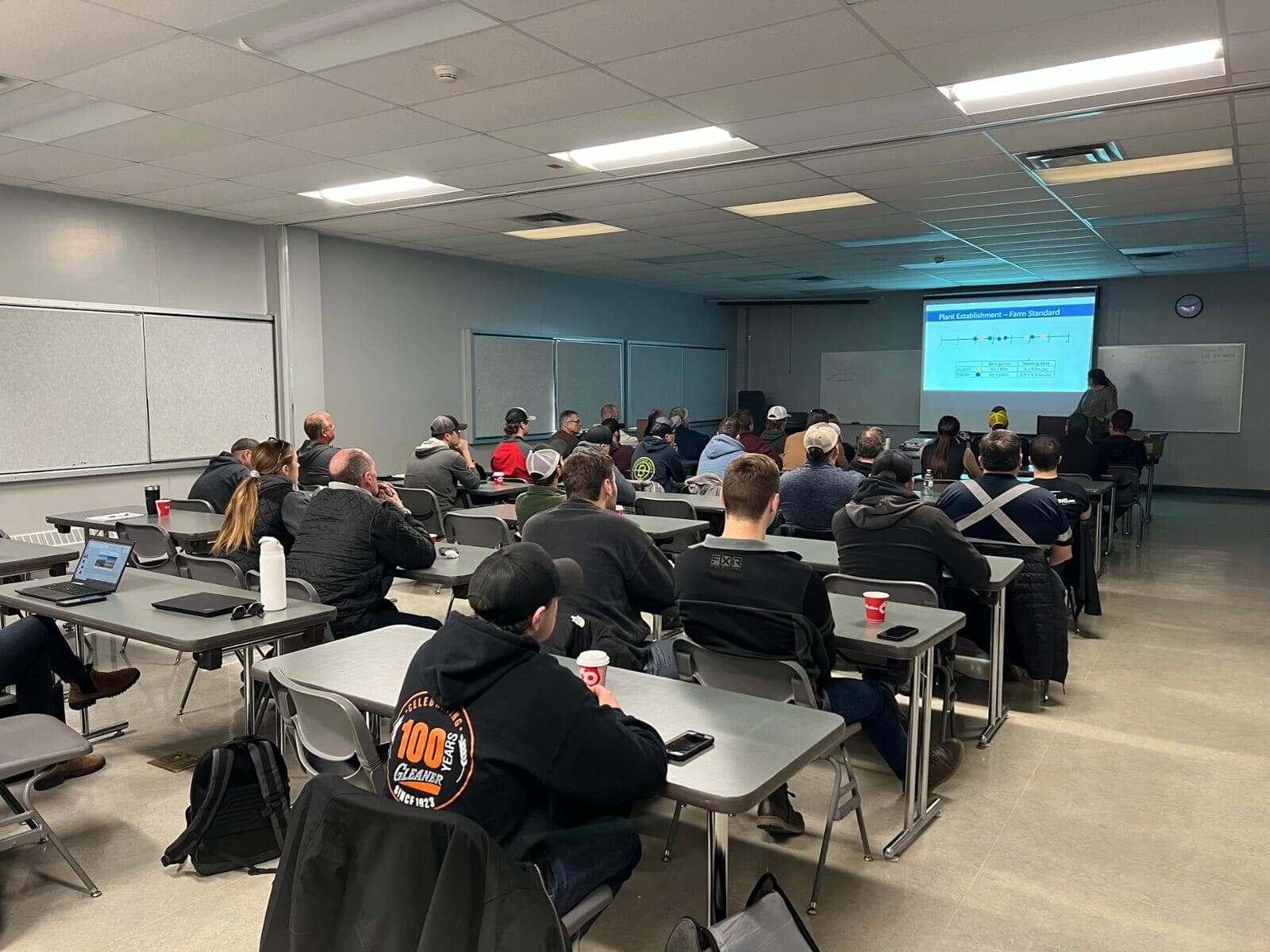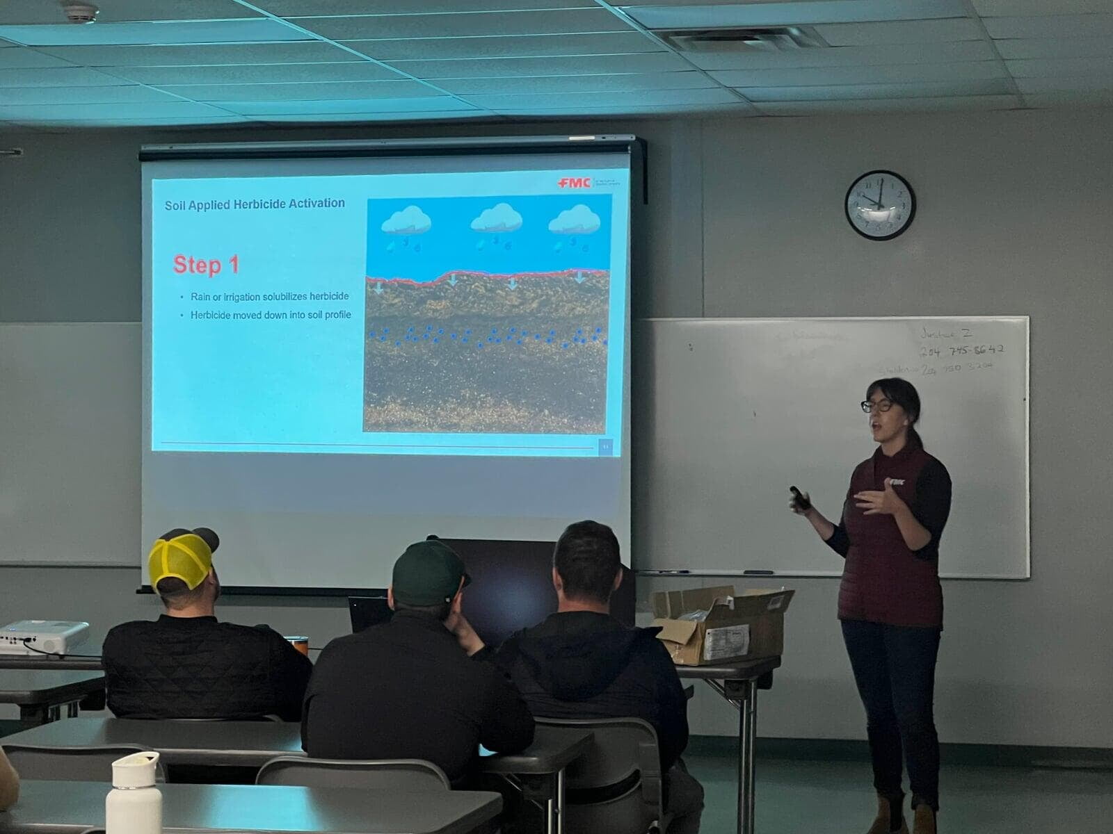 A great turnout by our Field 2 Field growers was seen at our April 9, 2024 Agronomy Update in Carman. 33 of our customers came out to hear about some great info on seed placed fertilizer results in canola from Amy Delaquis from the Manitoba Canola Growers. Followed by info from Rachel Evans, Technical Sales Agronomist for FMC on managing weeds combining pre-emerge products and cover crops. And the final presentation of the morning from Jason Hanson of Rock and Roll Agronomy from North Dakota focusing on some practical info on managing seeding rates and seeding depth in crops to the spring conditions. A big thank you to our growers for attending; the great questions and discussions they had with the presenters.